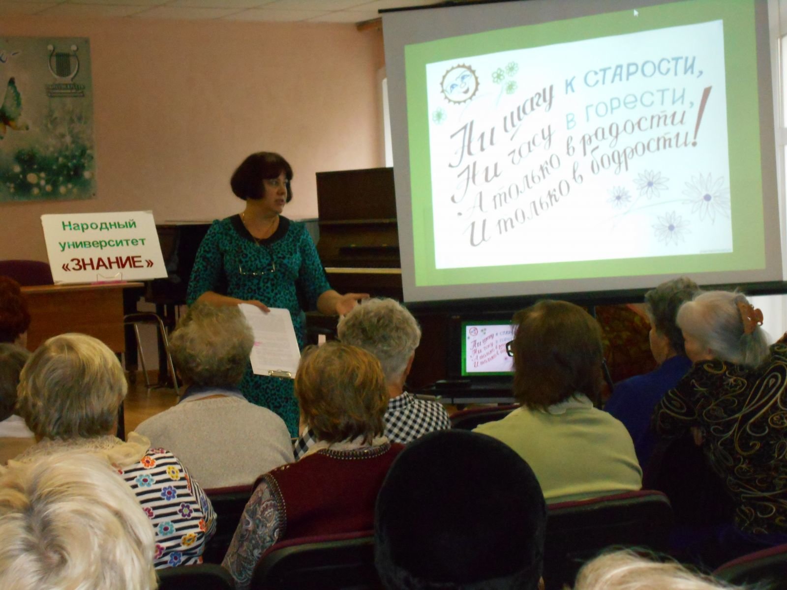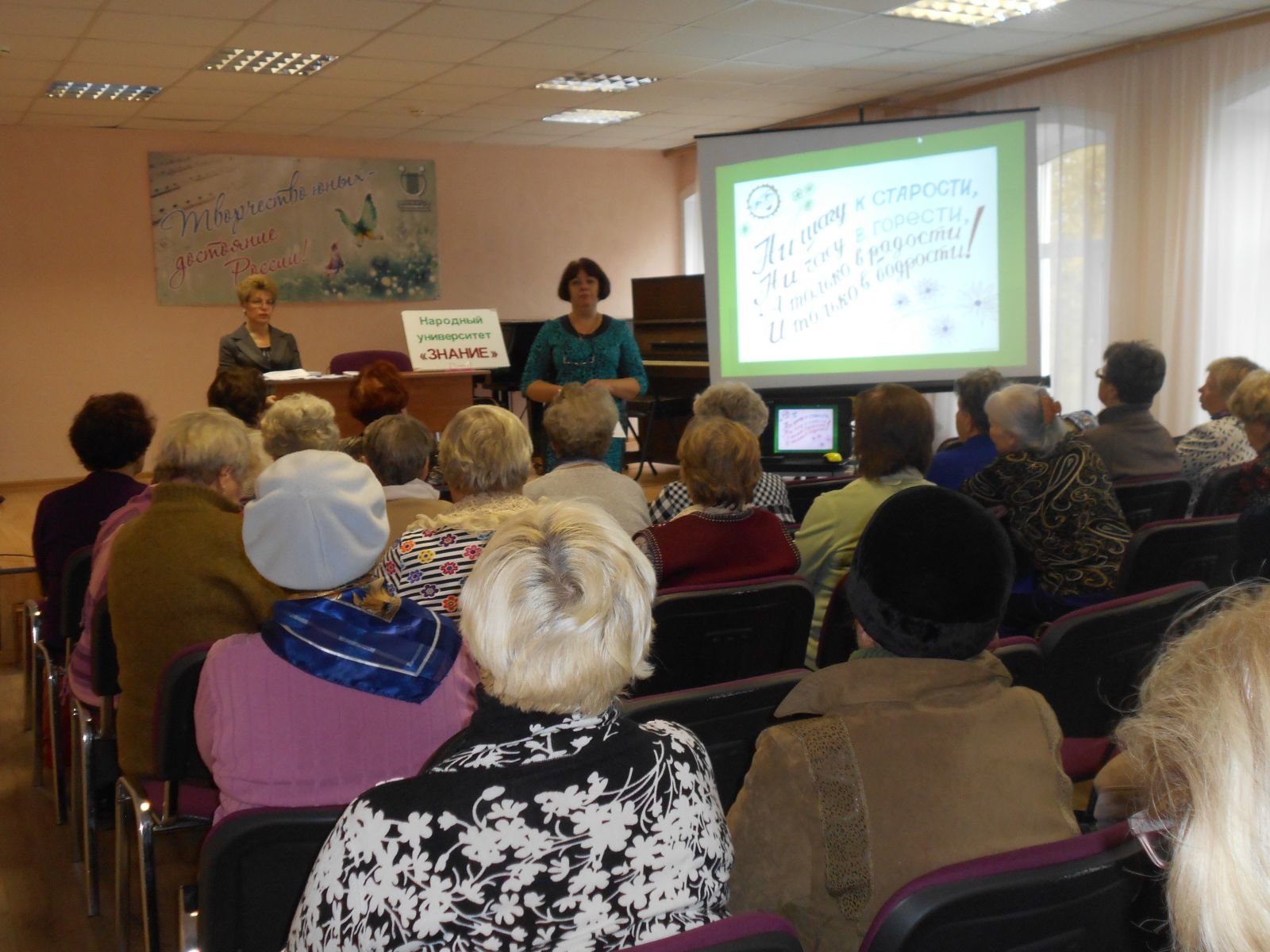 Директор комплексного центра, ректор университета, Наталья Валентиновна Воронина поздравила собравшихся  слушателей университета с началом нового учебного года, а также с Международным днем пожилых людей и наступающим православным праздником Покрова Пресвятой Богородицы.