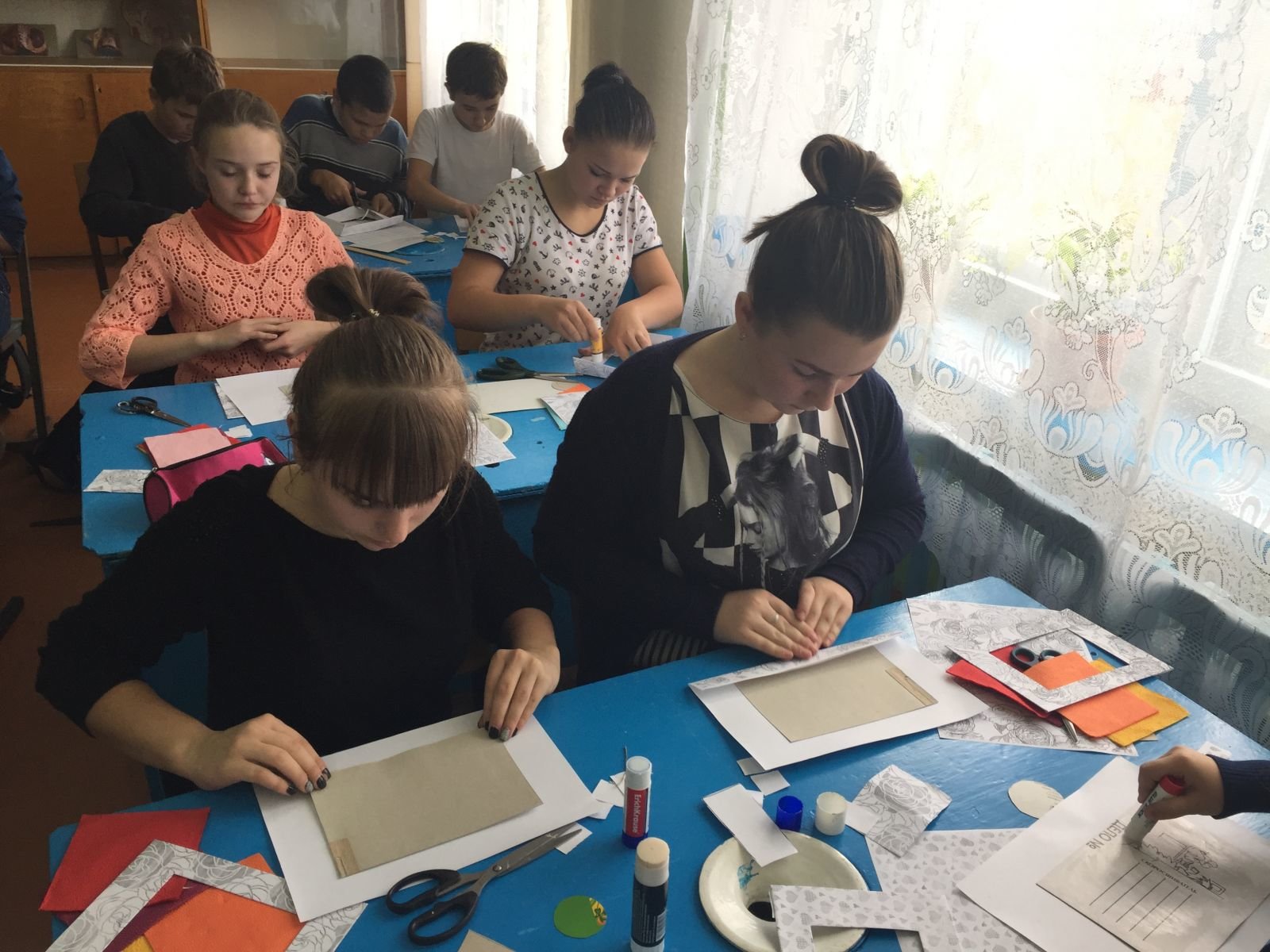 Специалисты отделения социального обслуживания семьи и детей ГБУСО ВО «Судогодский комплексный центр социального обслуживания населения» уже не первый раз проводят очень полюбившийся детям мастер-класс по изготовлению фоторамки в изысканном стиле "Винтаж" в этот раз в СОШ д.Сойма для учеников пятых-девятых классов.