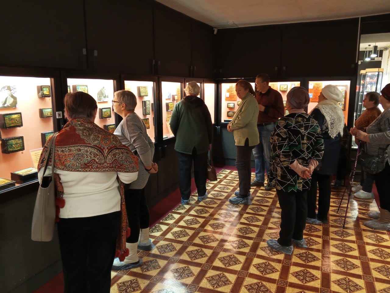 Отделение срочного социального обслуживания внедряет социальный проект «Туризм как терапия» в рамках социального проекта «Активное долголетие» регионального проекта «Старшее поколение» 13 ноября 2024 года для участниц клуба общения «Ягодка» была организована экскурсия в «Мстерский художественный музей», там они смогли увидеть древние подлинные раритеты мстерских иконописцев и резчиков по дереву, шедевры мстёрских ювелиров и работы искусных вышивальщиц, после для участниц клуба провели мастер-класс по росписи броши и магнита. Далее для участниц клуба организовали обзорно пешеходную экскурсия с посещением Свято-Богоявленского мужского монастыря и Женской обители святителя Иоанна Милостивого где ознакомились с историей и архитектурными памятниками одного из уникальных центров русской национальной культуры.