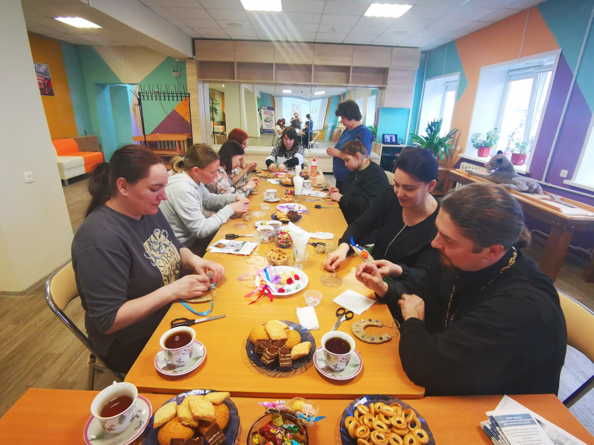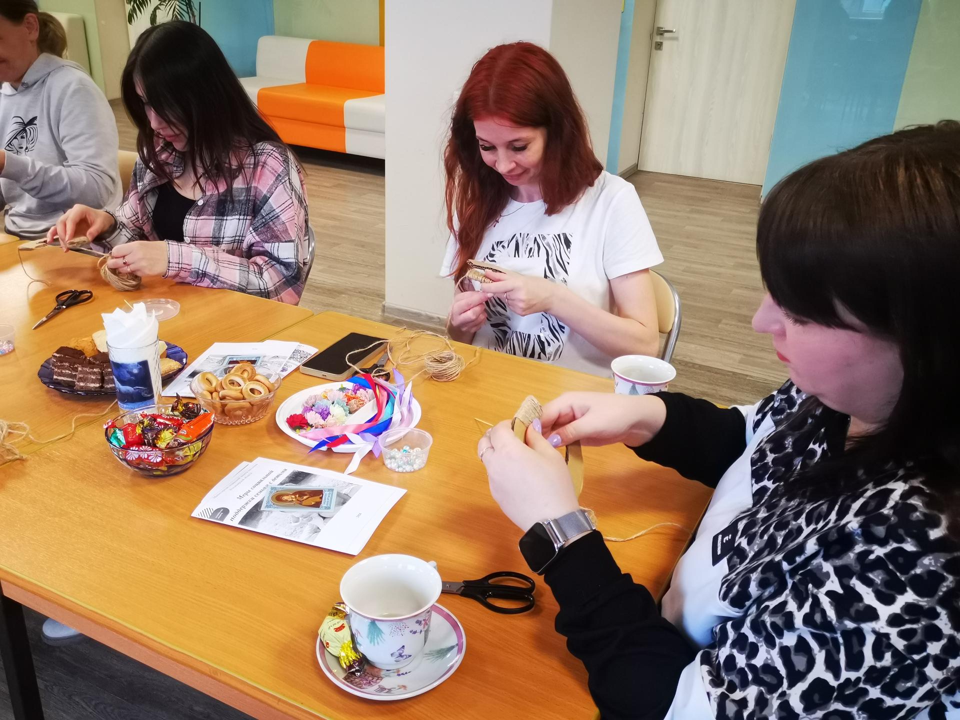 В продолжение встречи был проведен творческий мастер-класс по изготовлению семейного оберега в виде подковы. С помощью декора гости смогли создать неповторимые украшения для интерьера, наполнив их любовью, теплом и хорошими мыслями.