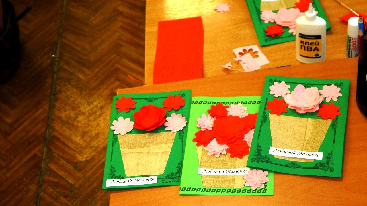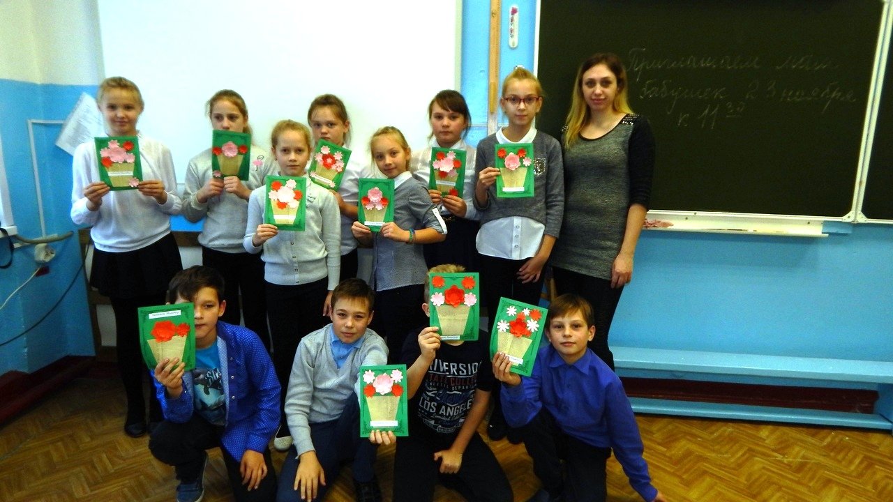 Накануне праздника, 22 ноября в 4 «А» классе МБОУ «Андреевская средняя общеобразовательная школа» был проведен мастер-класс специалистом отделения социального обслуживания семьи и детей Моисеевой А.С. по изготовлению поздравительной открытки к ДНЮ МАТЕРИ. Дети работали с энтузиазмом, подойдя творчески к этому процессу. Получились очень красивые открытки, которые дети подарят своим мамам.