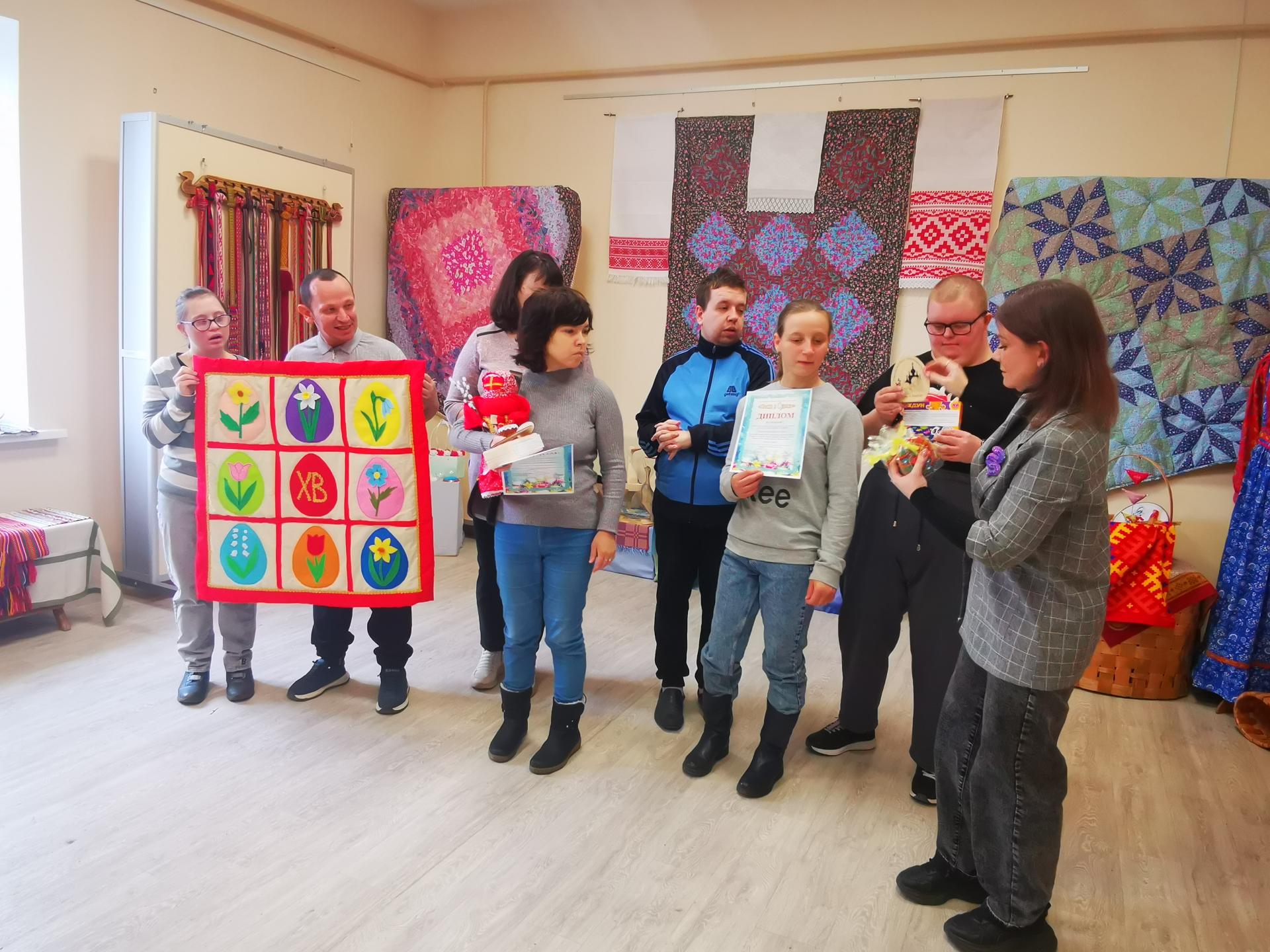 Коллективная работа «Пасха» в виде яркого панно и русско-народная пасхальная кукла – индивидуальная работа одной из участниц группы, были по достоинству оценены жюри конкурса. Чтобы получить заслуженные награды и дипломы молодые юноши и девушки были приглашены в Дом народного творчества, где они также смогли посетить увлекательную выставку «Мир мужских увлечений» и прикоснуться к уникальным произведениям искусства, сделанным мужскими руками .